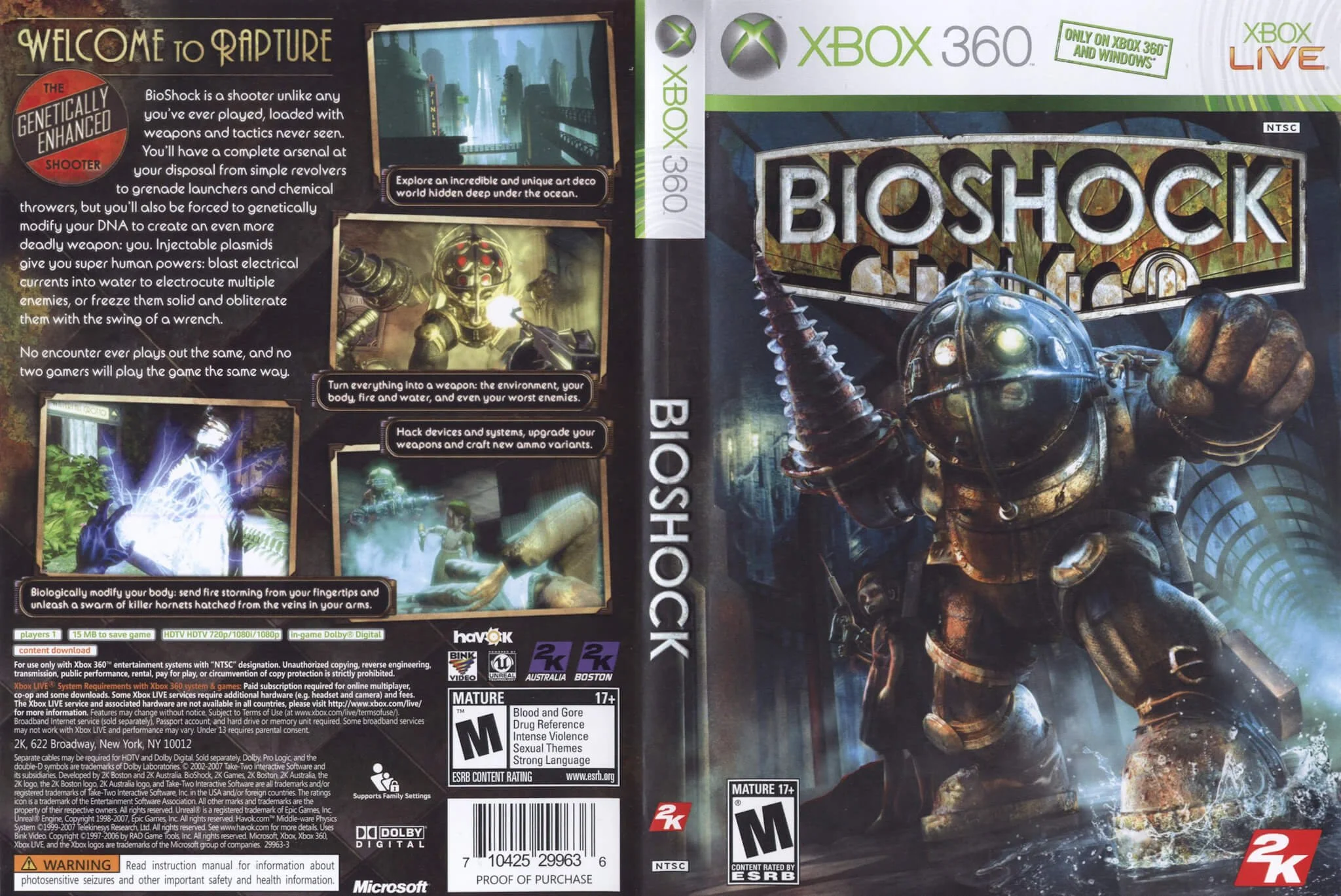 BioShock shipped first on Xbox 360 and Windows on August 21, 2007, leveraging a heavily customized Unreal Engine 2.5 to deliver that art‑deco fever dream under the sea. Reception was immediate and ecstatic—“universal acclaim”—with critics calling out narrative ambition, atmosphere, and the freedom to combine weapons, environments, and plasmids.